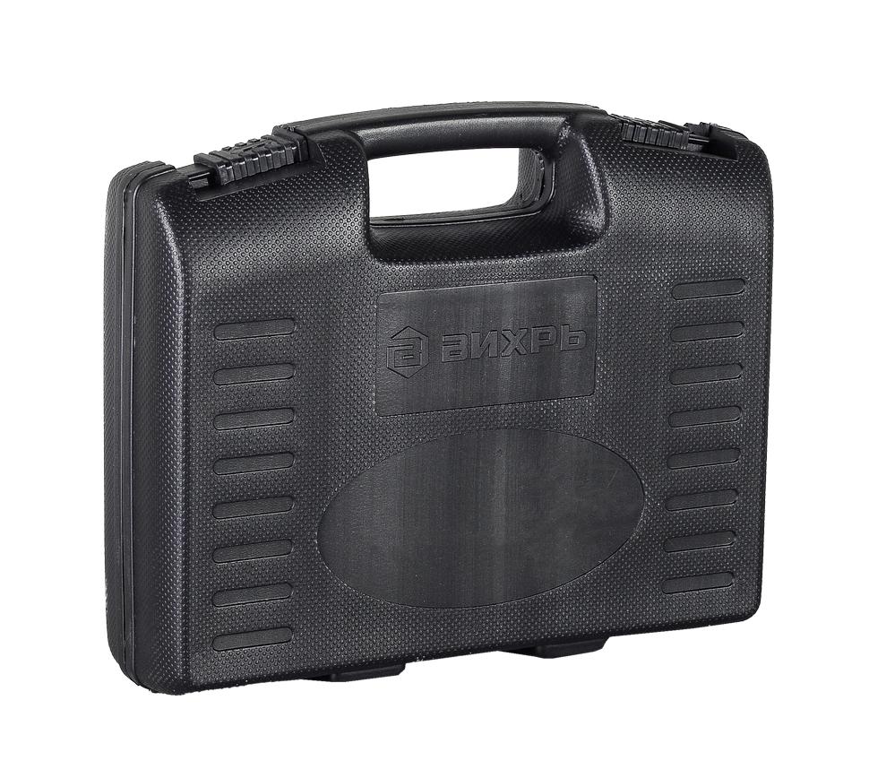 - Электрогравер поставляется в пластиковом кейсе, в котором его удобно хранить и перемещать. Кроме самого устройства и гибкого вала в этом кейсе можно найти набор насадок и ключей.