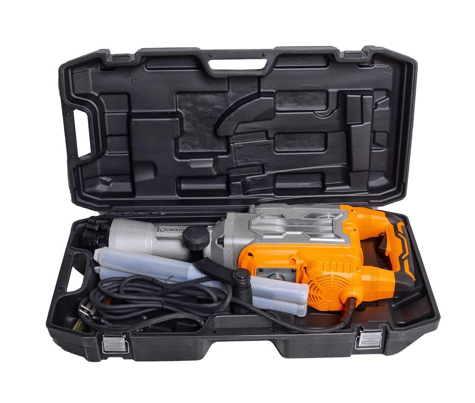 Эргономичная форма корпуса дополнена удобной рукояткой. Надежный хват обеспечивает комфорт при длительной работе, контроль над инструментом и высокую производительность. Устройство оснащено 2 м кабелем питания. Для удобства хранения и перемещения предусмотрен пластиковый кейс. Пика, зубило и тюбик со смазкой в комплекте.