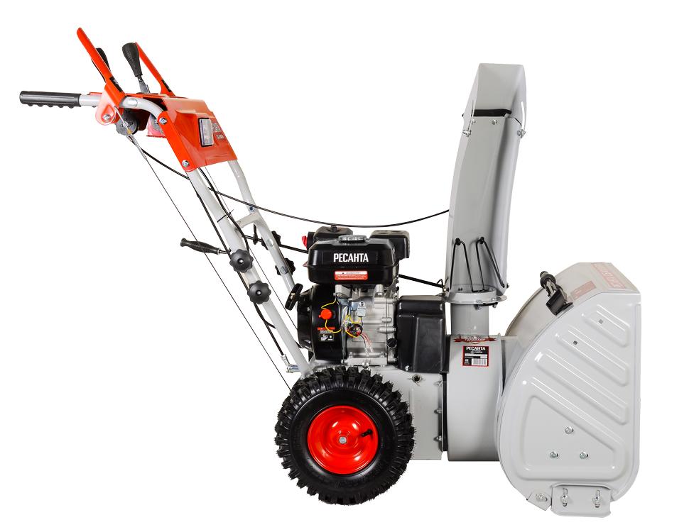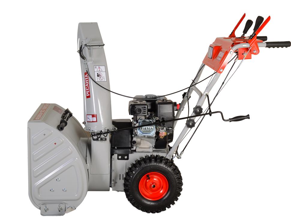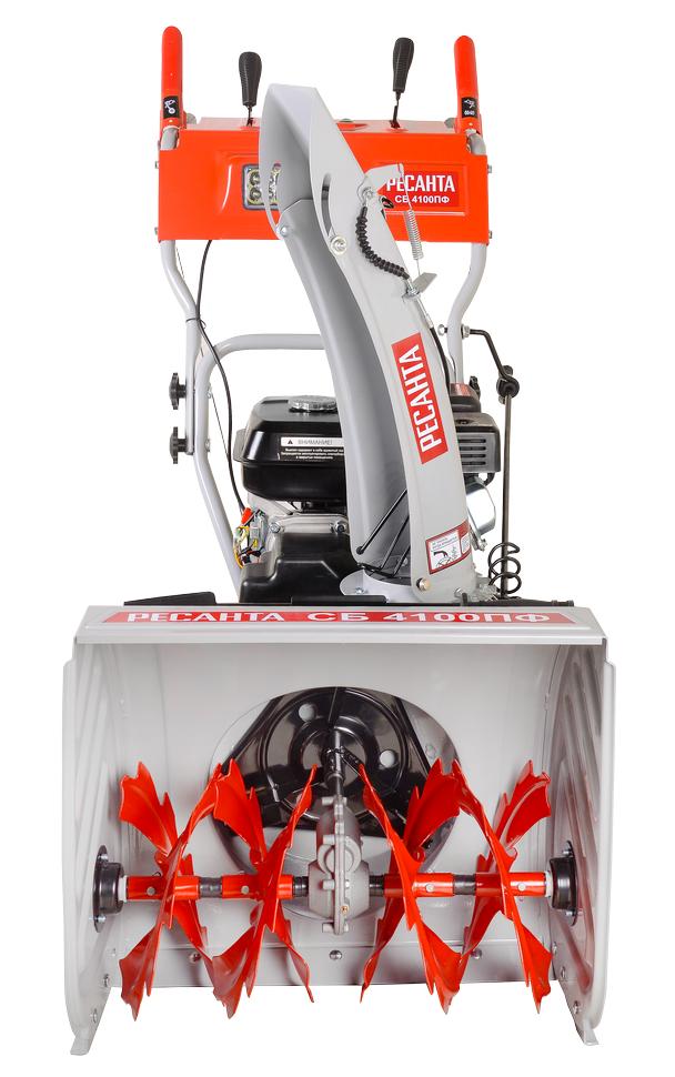 Снегоуборщик СБ 4100 ПФ Ресанта – колесная самоходная техника, созданная для очистки от снега небольших территорий частных домов и загородных дач. Агрегат работает на бензине, объем бака составляет 3,6 л. Оснащен 4-тактным двигателем мощностю 7,0 л.с. За одно прохождение способен обработать полосу 56 см шириной. Высота захвата увеличена до 54 см.
