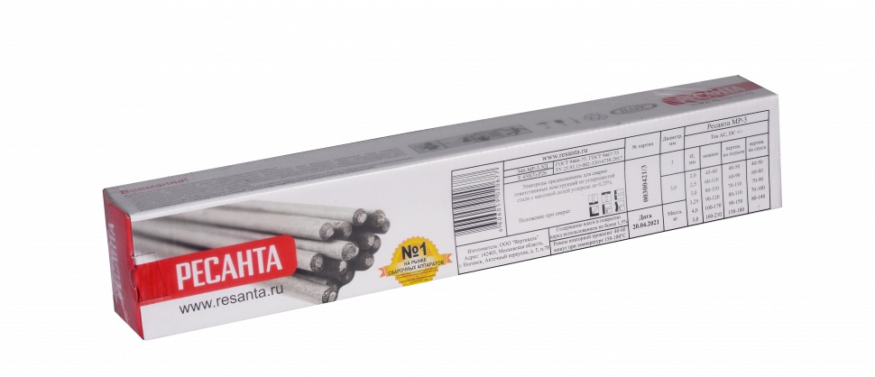 Сварочные электроды РЕСАНТА предназначены для ручной дуговой сварки стальных конструкций переменным или постоянным током. Данные электроды могут применяться как в быту, так и для сварки ответственных конструкций из углеродистой стали с массовой долей углерода до 0,25%. Сварка возможна в различных пространственных положениях, кроме сварки на спуск. Электроды РЕСАНТА относятся к высококачественным электродам типа МР-3 с рутиловым покрытием и изготовлены в соответствии с требованиям ГОСТ.