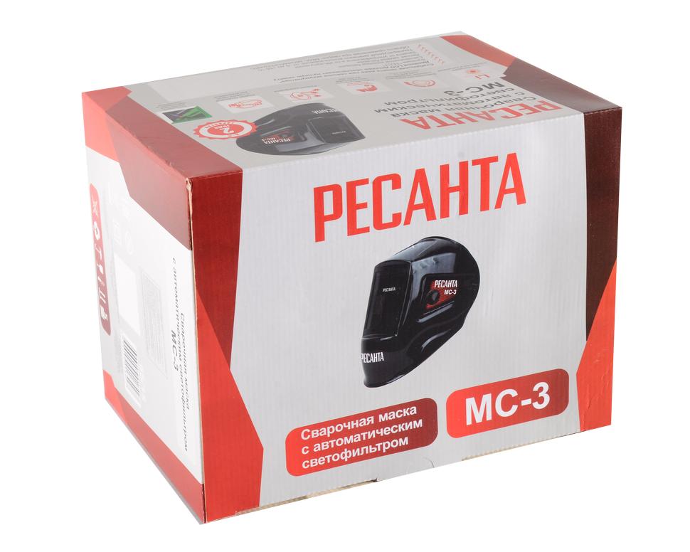 Сварочная маска РЕСАНТА МС-3 предназначена для защиты глаз от видимого, ультрафиолетового и инфракрасного излучения, а также для защиты головы и шеи от попадания искр при сварочных работах. Маска данного типа удобна, поскольку светофильтр автоматически затемняется при зажигании дуги. Такой светофильтр назвали «хамелеоном» из-за способности автоматически затемняться. Степень затемнения можно настраивать с помощью встроенного регулятора в зависимости от модели маски.
